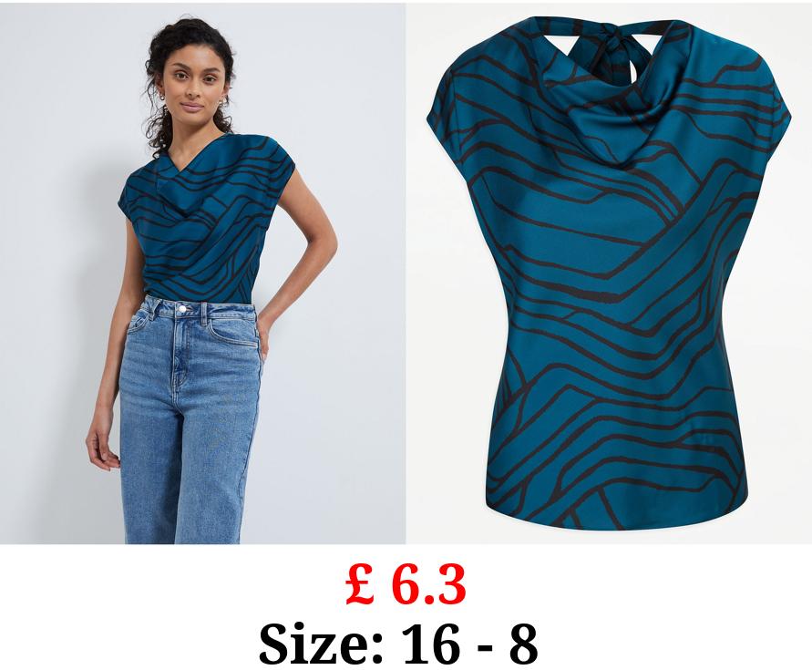 £ 6.3 Teal Patterned Cowl Neck Open Back Top