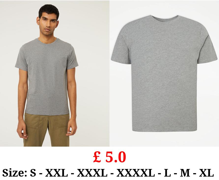 £ 5.0 Grey Plain Slim Fit T-Shirt