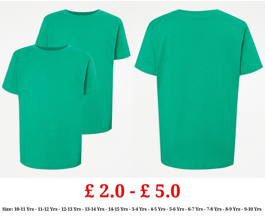 £ 2.0 - £ 5.0 Green Crew Neck School T-Shirt 2 Pack