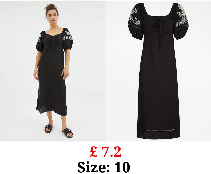 £ 7.2 Black Floral Embroidered Linen Blend Midi Dress