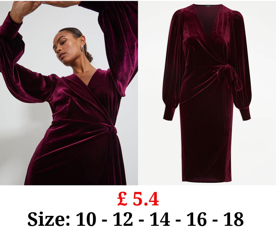 £ 5.4 Burgundy Velvet Wrap Front Midi Dress