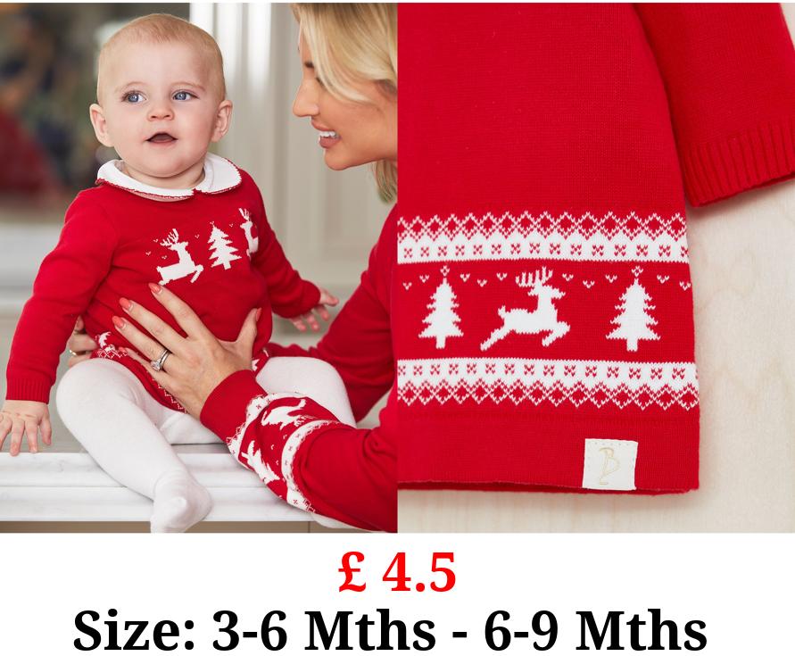 £ 4.5 Billie Faiers Red Fairisle Knitted Dress and Tights Outfit