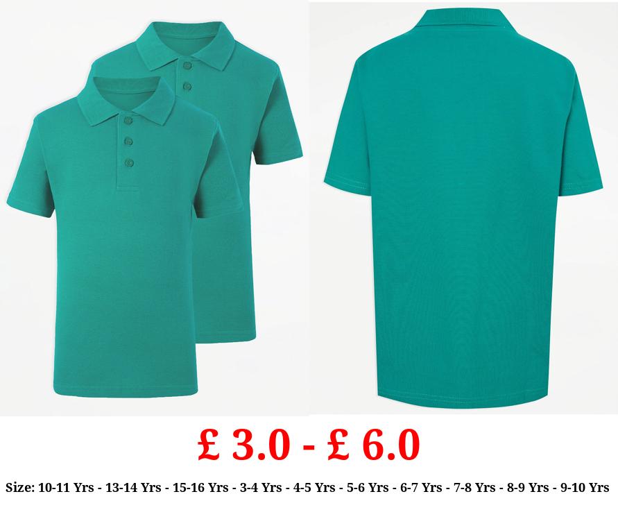£ 3.0 - £ 6.0 Jade Green Short Sleeve School Polo Shirts 2 Pack