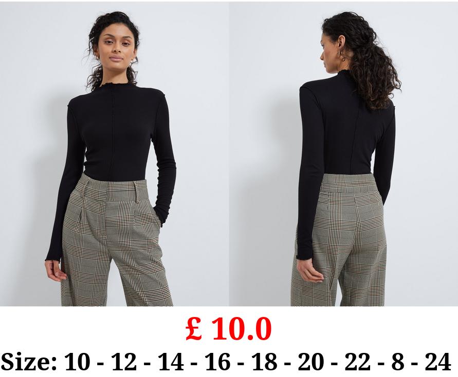 £ 10.0 Black Seam Detail Long Sleeve Top