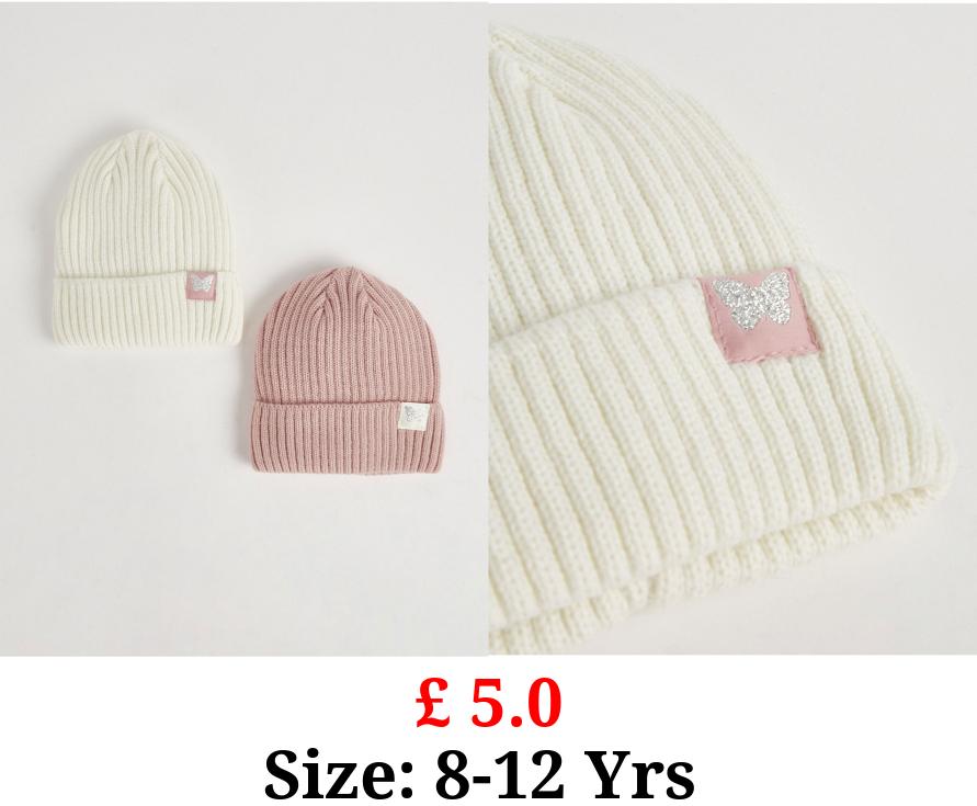 £ 5.0 Assorted Pink Beanie Hats 2 Pack
