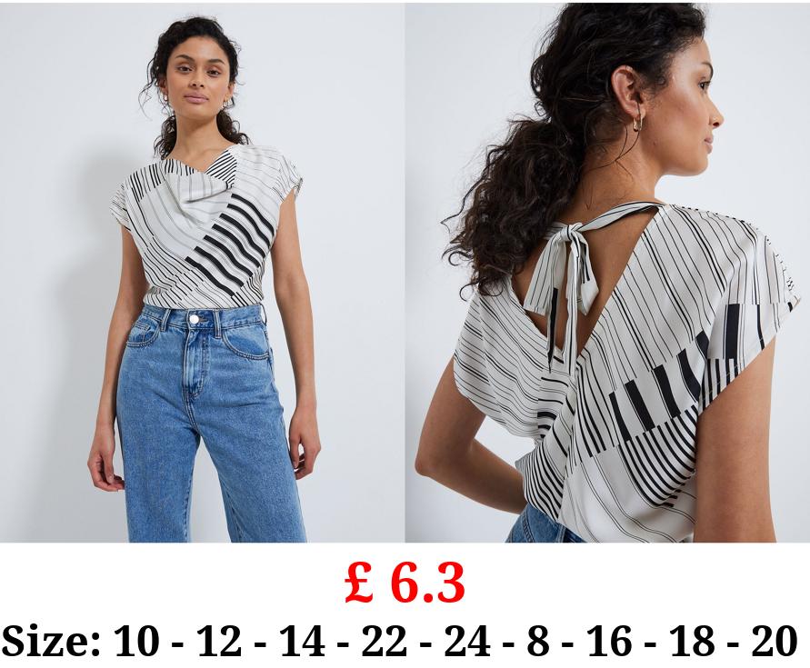 £ 6.3 White Striped Cowl Neck Open Back Top
