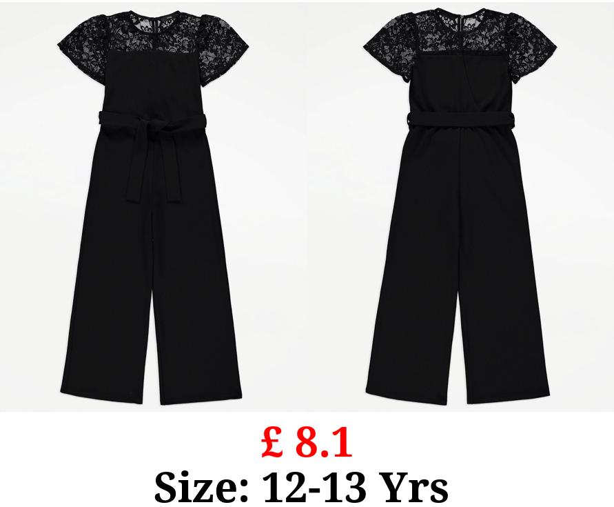 £ 8.1 Black Lace Belted Jumpsuit