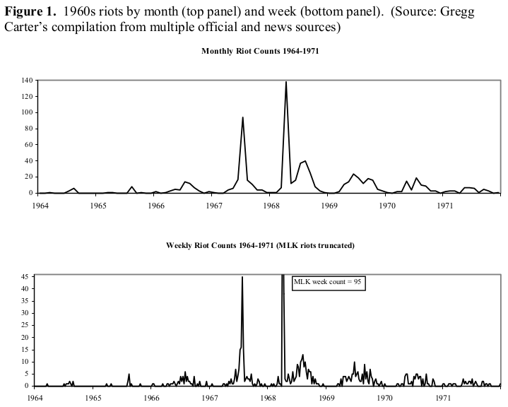 Питчер энд Ко. утверждали, что все серии «насилия» — включая насилие крупных организаций — имеют похожий паттерн. Это не позволит отличить спонтанную волну от организованной. Мы предположили, что на графике могла бы быть заметна фальшивая новость об организованных акциях. Эти ожидания не оправдались. Однако ещё не сформировался правый хвост волны, на который тоже будет любопытно посмотреть.