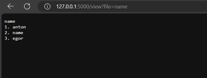 Он открыл файл с именем "name". В адресной строке можно увидеть, как передается название файла (через параметр file=название_файла).