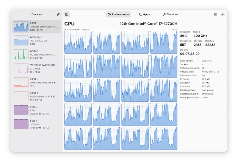 Linux 的资源管理器,图形化实时显示本机的资源占用情况。
