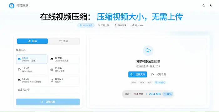 纯前端的视频压缩,直接调用 GPU 进行硬件加速。(@eyeandroid 投稿)