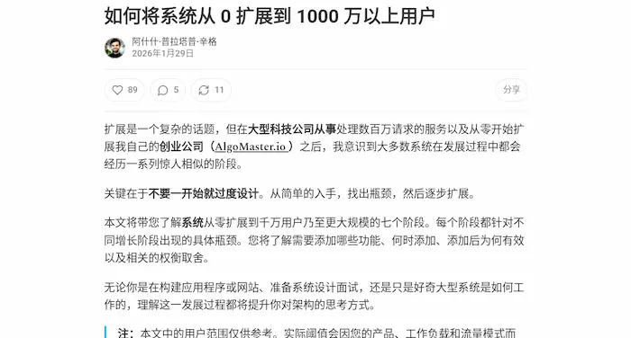 一篇系统架构的通俗教程,详细介绍架构发展的7个阶段,逐渐负载不断增长的用户数量,写得非常好。