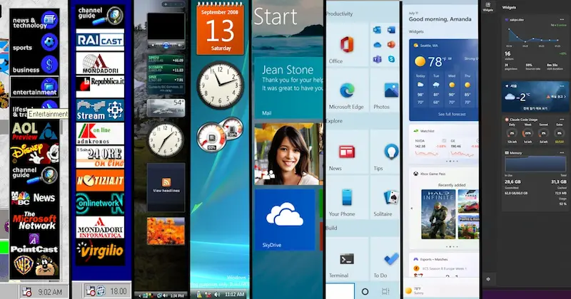 一篇长文,图文介绍迄今七代的 Windows 桌面小部件,每一代都有缺陷,不得不改。这么一个小东西,没想到这么难搞,微软都搞不定。