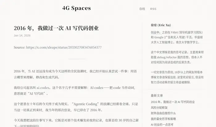 作者徐宥(Eric Xu)回忆他在2016年的 AI 创业,当时他想训练一个大模型,需要25万美元,但是找不到投资人。(@gengxiuli 投稿)