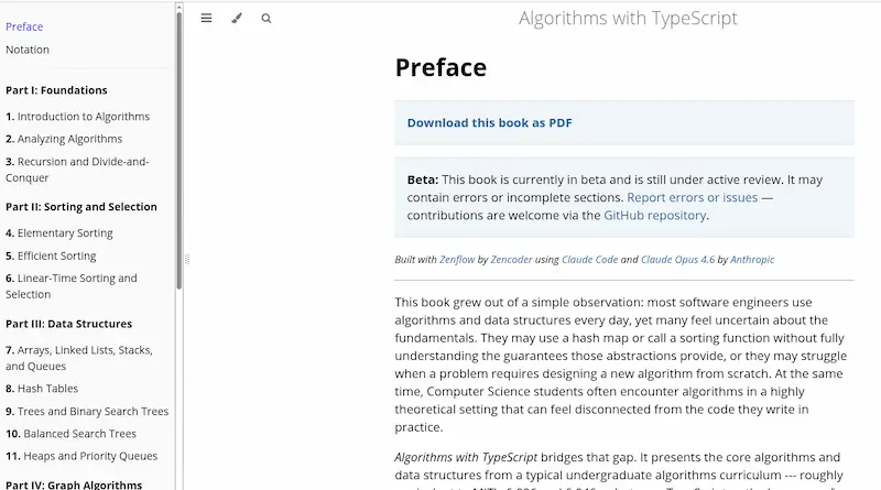 免费阅读的英文电子书,使用 TypeScript 语言介绍数据结构和算法。