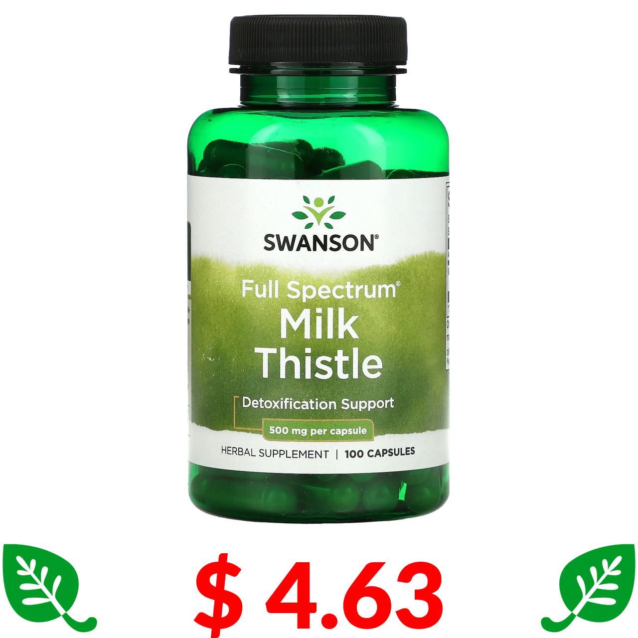 $ 4.63 Swanson, Расторопша, 500 мг, 100 капсул