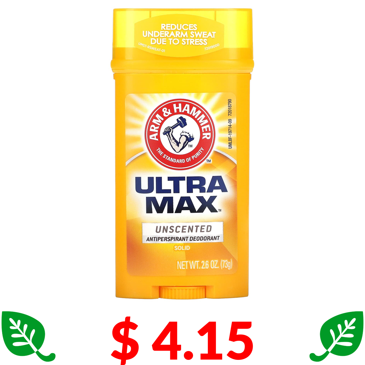 $ 4.15 Арм энд Хаммер, UltraMax, твердый дезодорант для мужчин, без запаха, 2,6 унции (73 г)