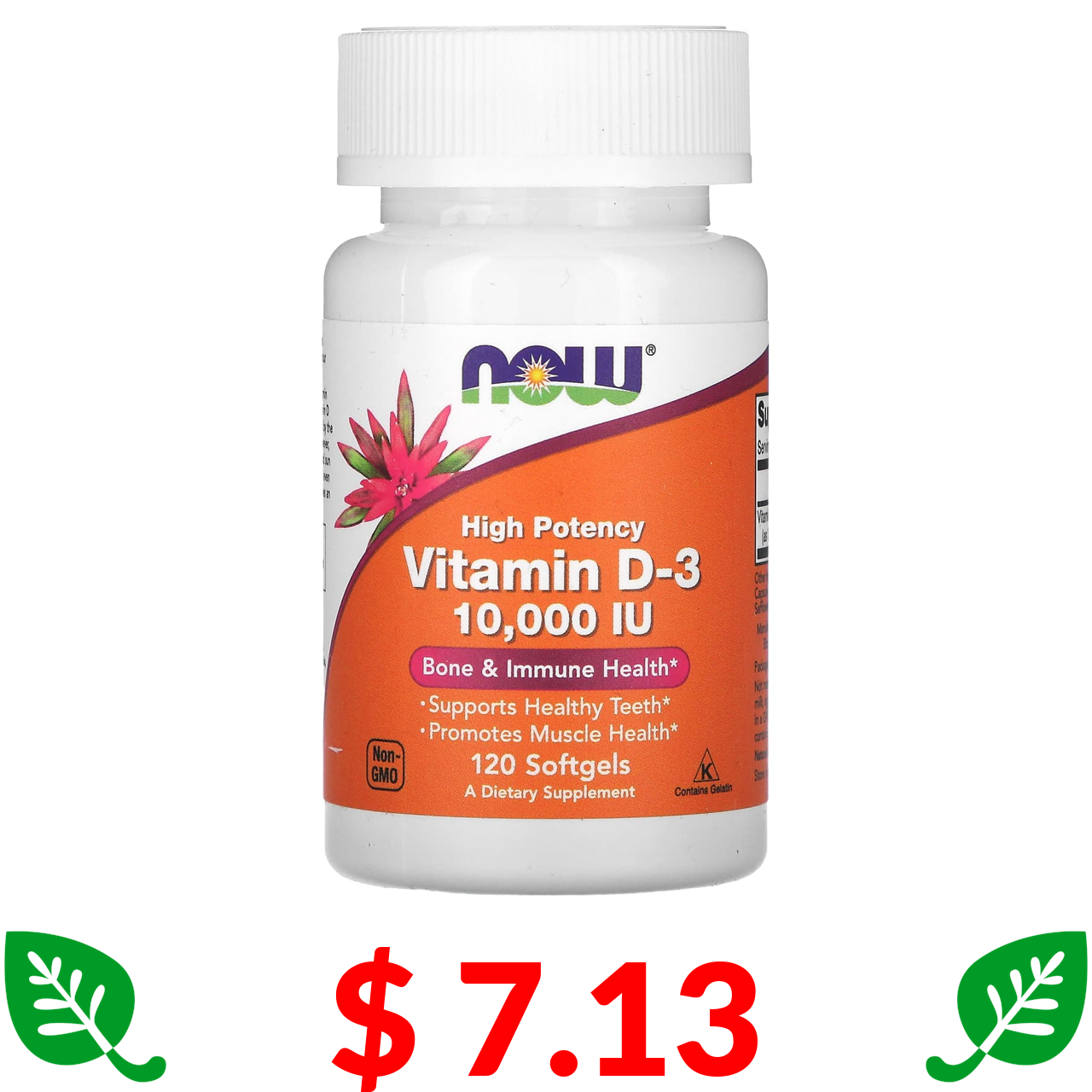 $ 7.13 Now Foods, витамин D3, высокоактивный, 10 000 МЕ, 120 капсул