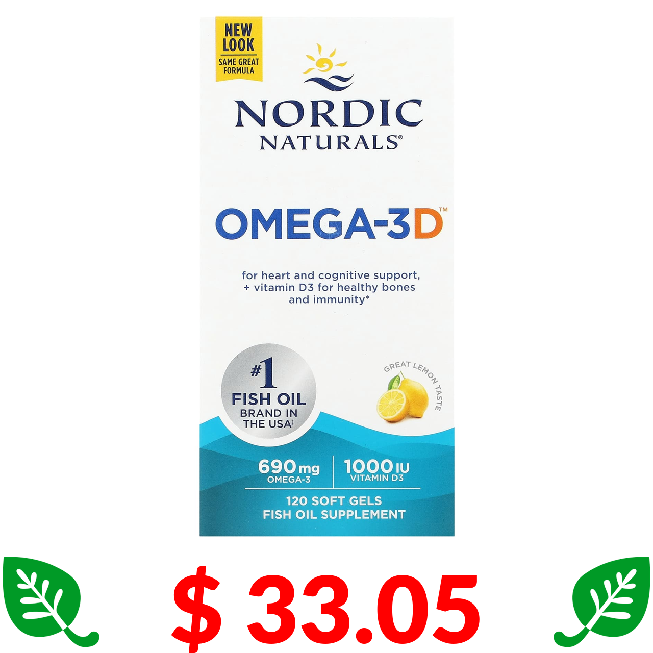 $ 33.05 Нордик Натуралс, Omega-3D, со вкусом лимона, 120 капсул