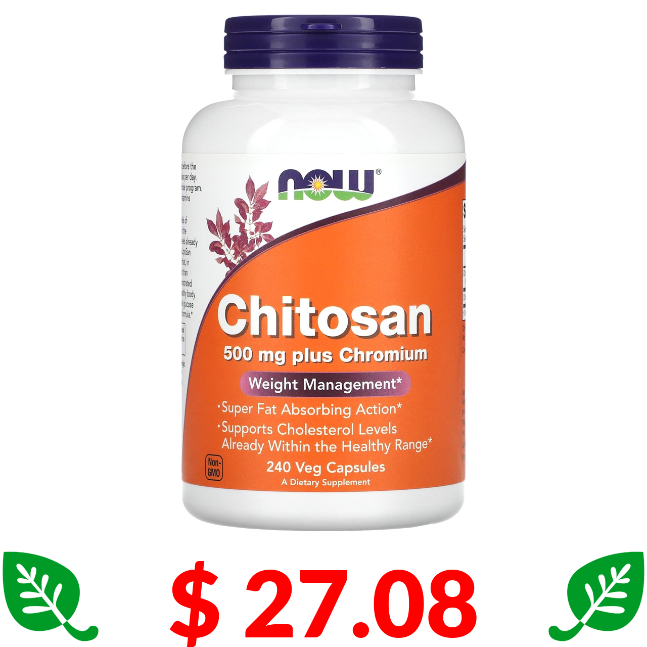 $ 27.08 Now Foods, хитозан, 500 мг, 240 растительных капсул