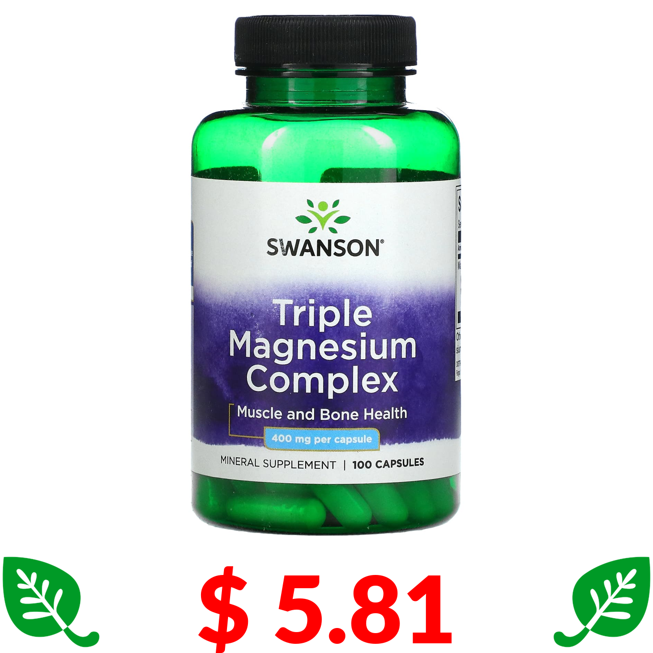 $ 5.81 Swanson, Комплекс тройного магния, 400 мг, 100 капсул