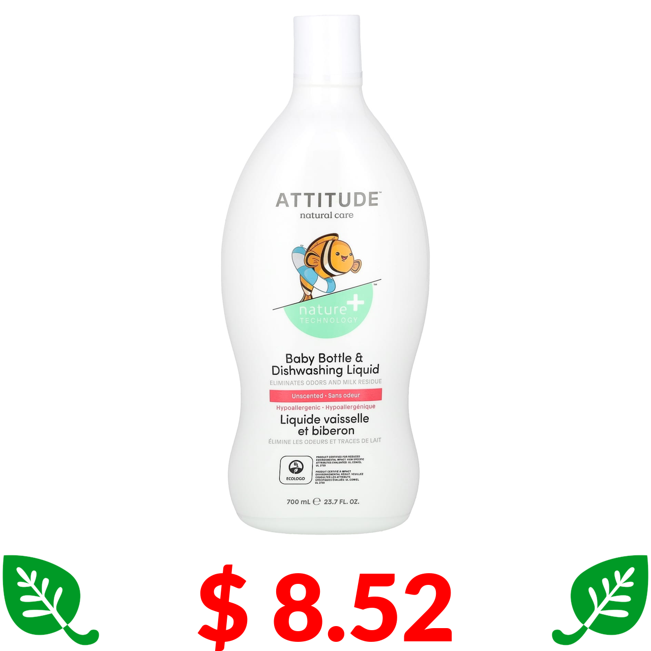 $ 8.52 ATTITUDE, жидкость для мытья посуды и бутылочки, без запаха, 700 мл (23,7 жидк. унции)