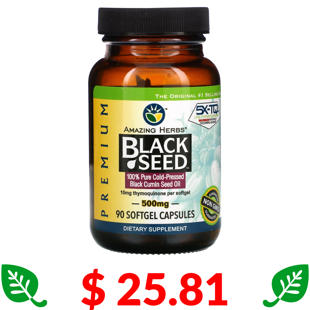 $ 25.81 Amazing Herbs, Black Seed, 500 мг, 90 гелевых капсул