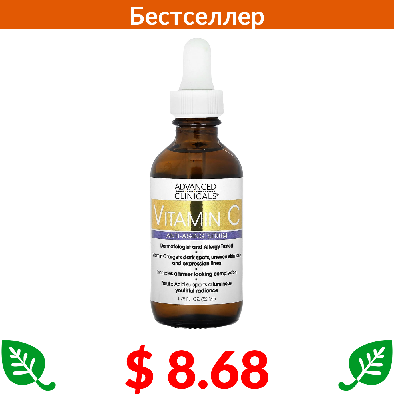 $ 8.68 Advanced Clinicals, антивозрастная сыворотка с витамином C, 52 мл, (1,75 жидк. унции)
