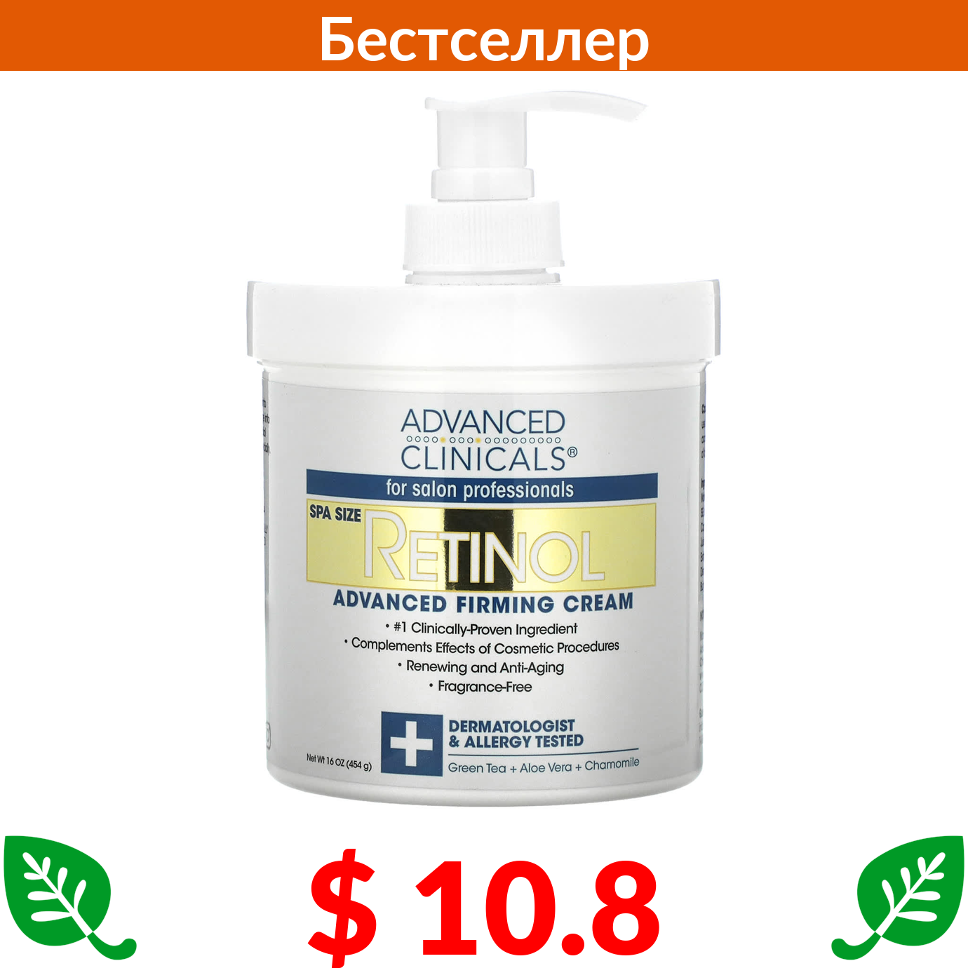 $ 10.8 Advanced Clinicals, Retinol, укрепляющий крем с улучшенной формулой, 454 г (16 унций)