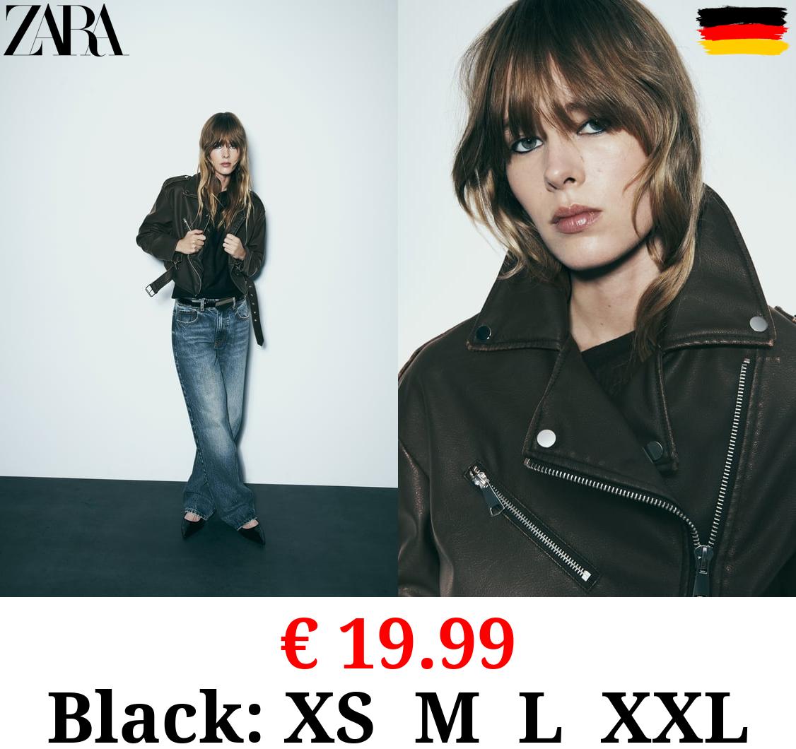 € 19.99 WORN EFFECT CROPPED LEATHER EFFECT BIKER JACKET