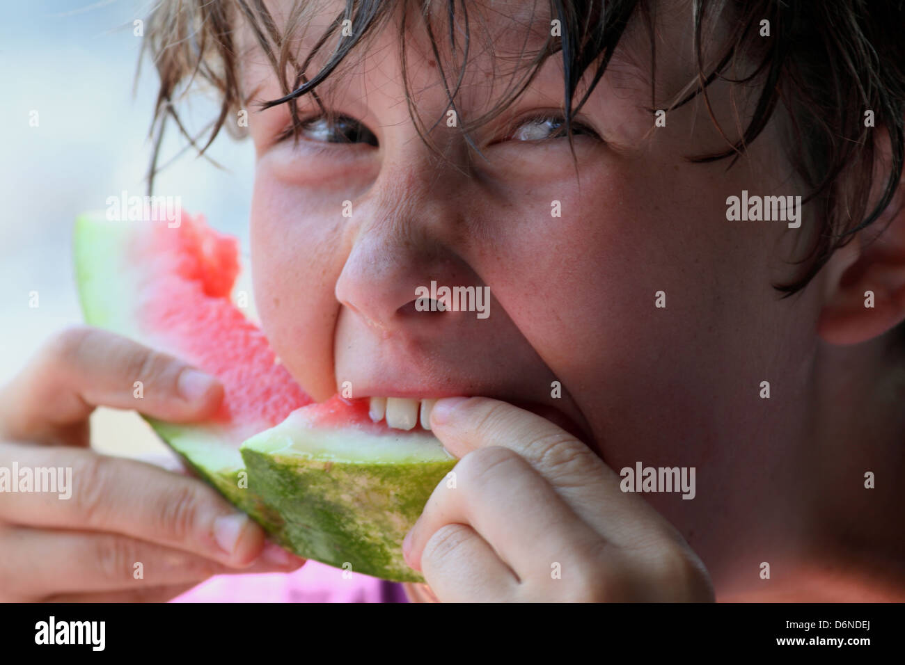 what is Fat, green from the outside and red in the inside. BBW eating watermellon