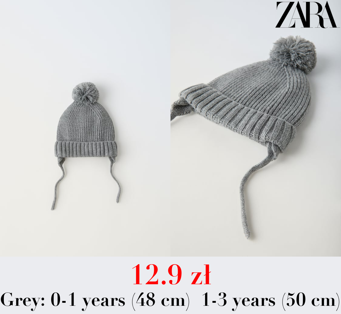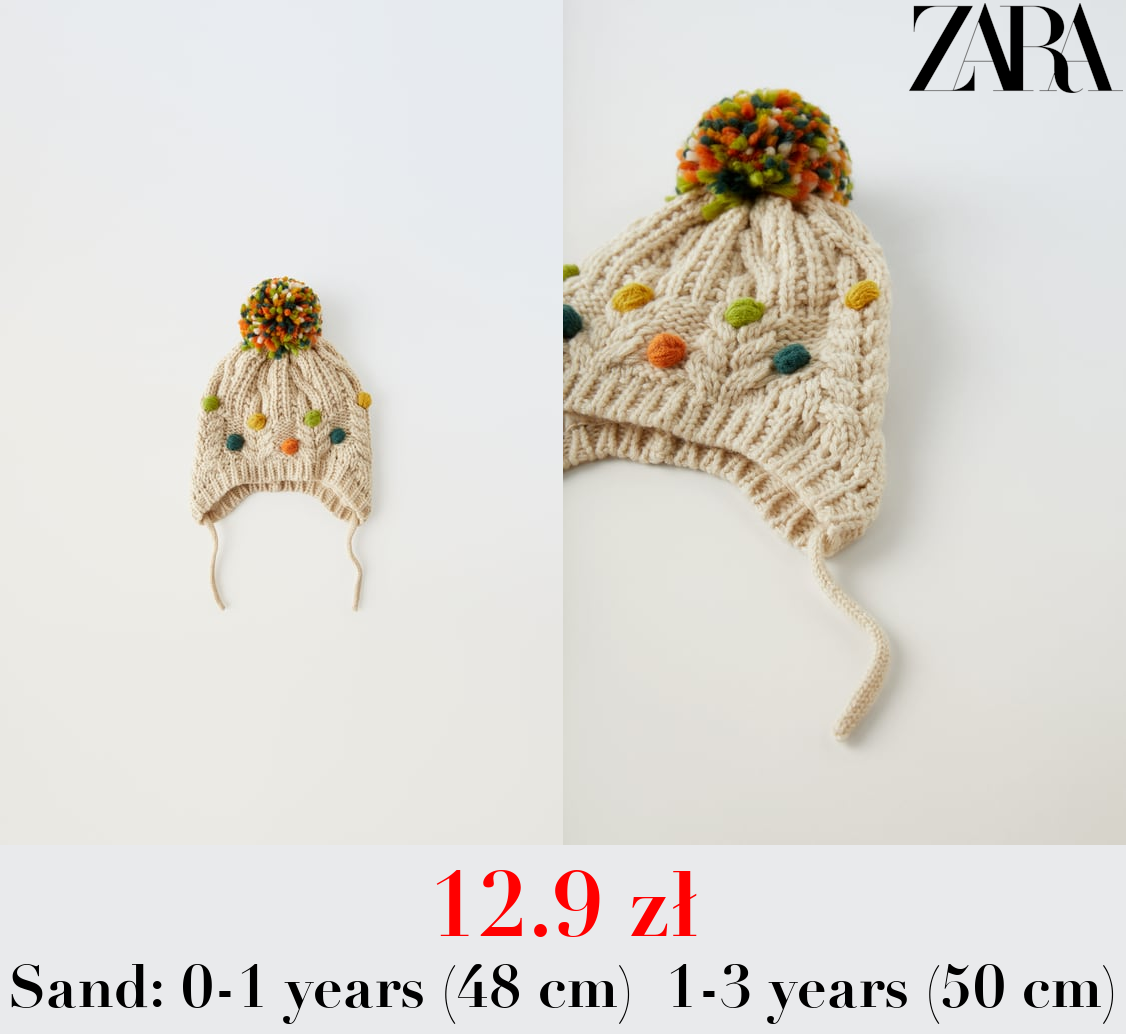 12.9 zł KNIT POMPOM BEANIE WITH EMBROIDERY AND EARMUFFS