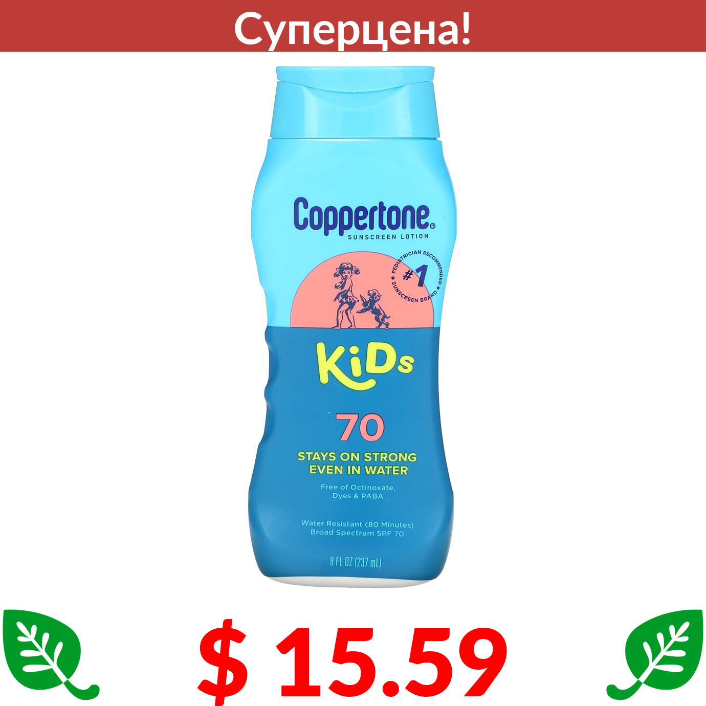 $ 15.59 Coppertone, Kids, солнцезащитный лосьон, SPF 70, 237 мл (8 жидк. Унций)