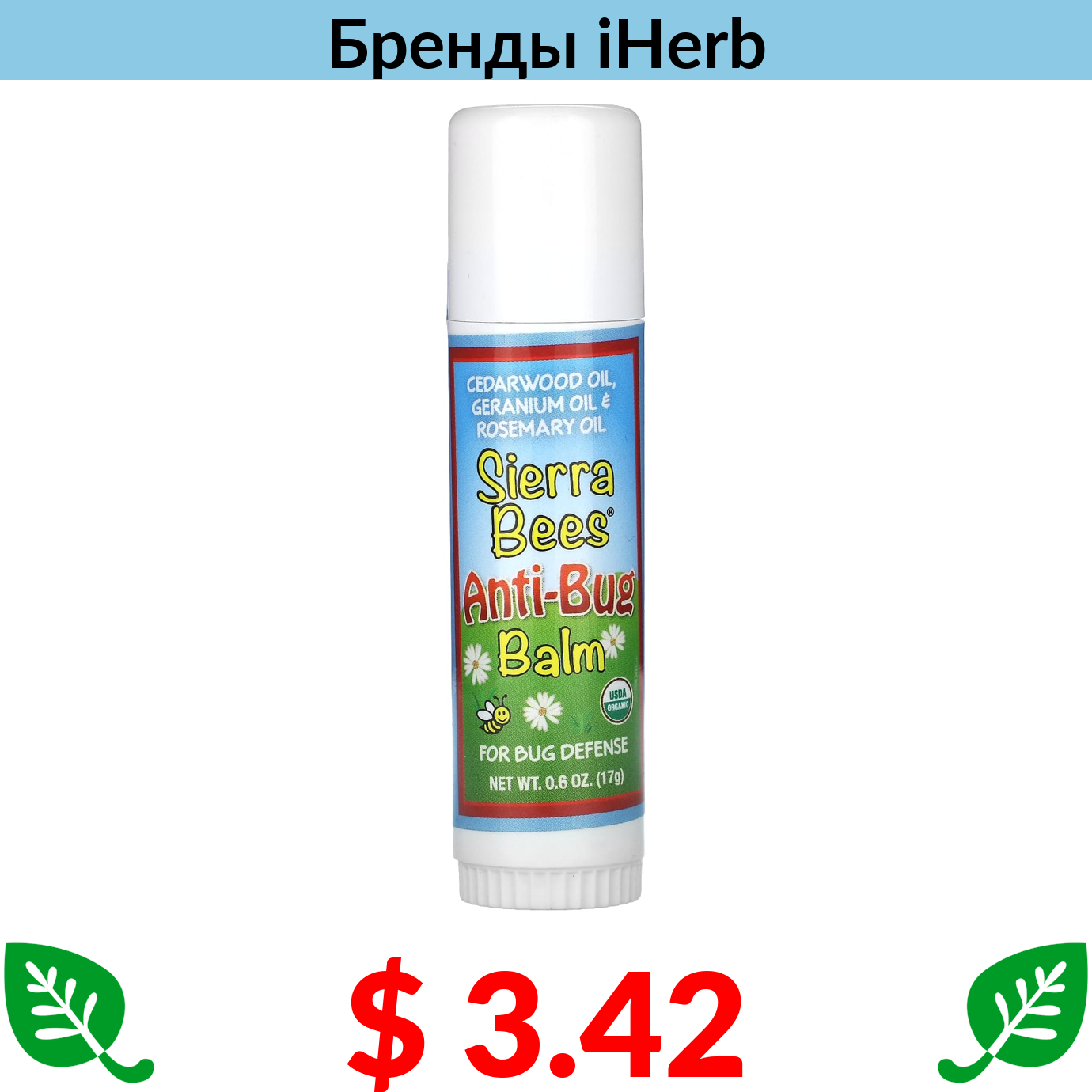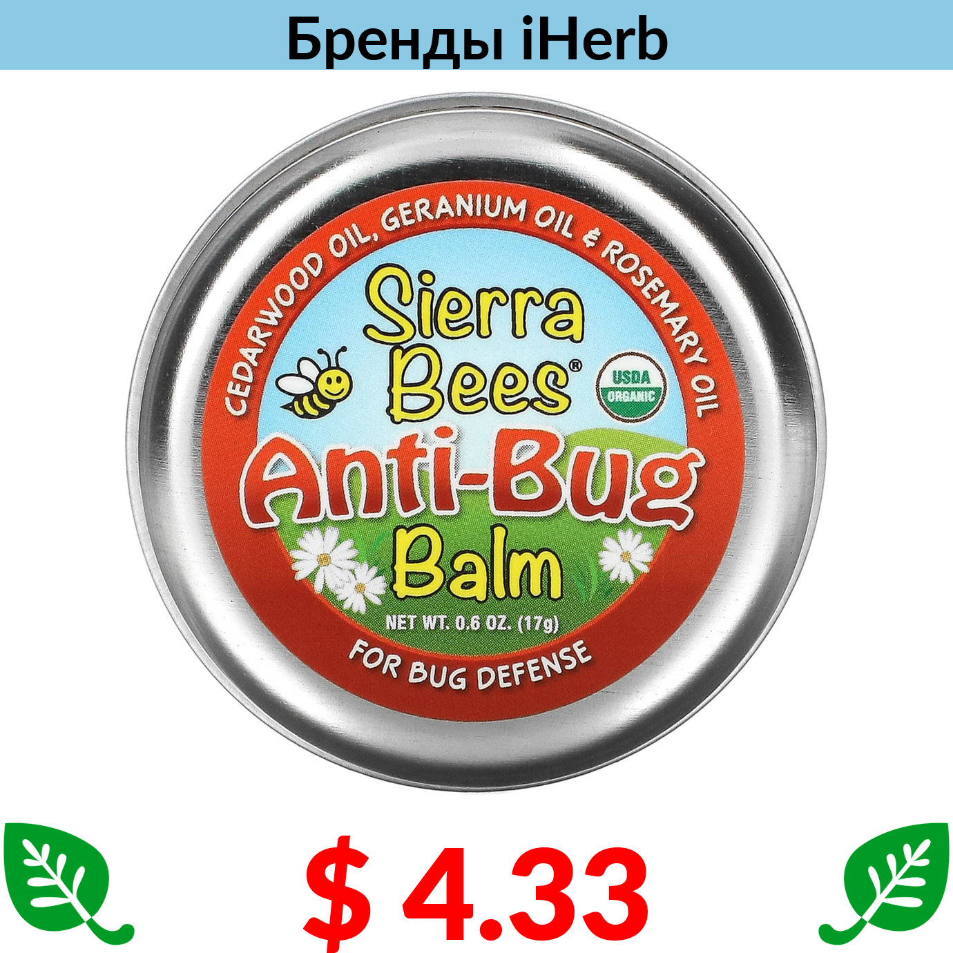 $ 4.33 Sierra Bees, бальзам против насекомых, масло кедра, герани и розмарина, 17 г (0,6 унции)
