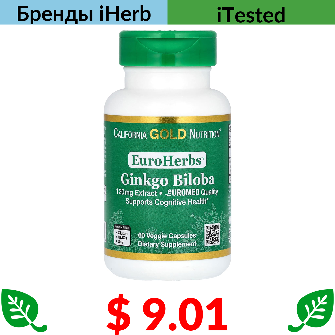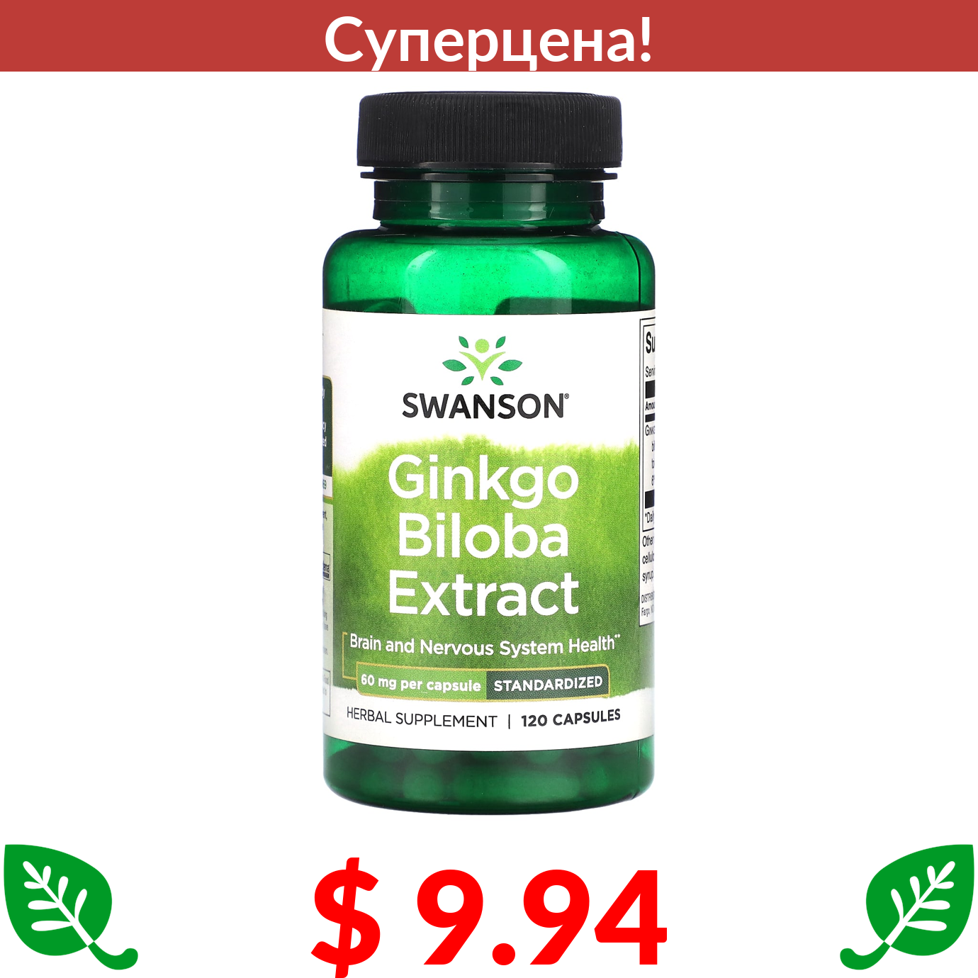 $ 9.94 Swanson, Экстракт гинкго билоба, 60 мг, 120 капсул