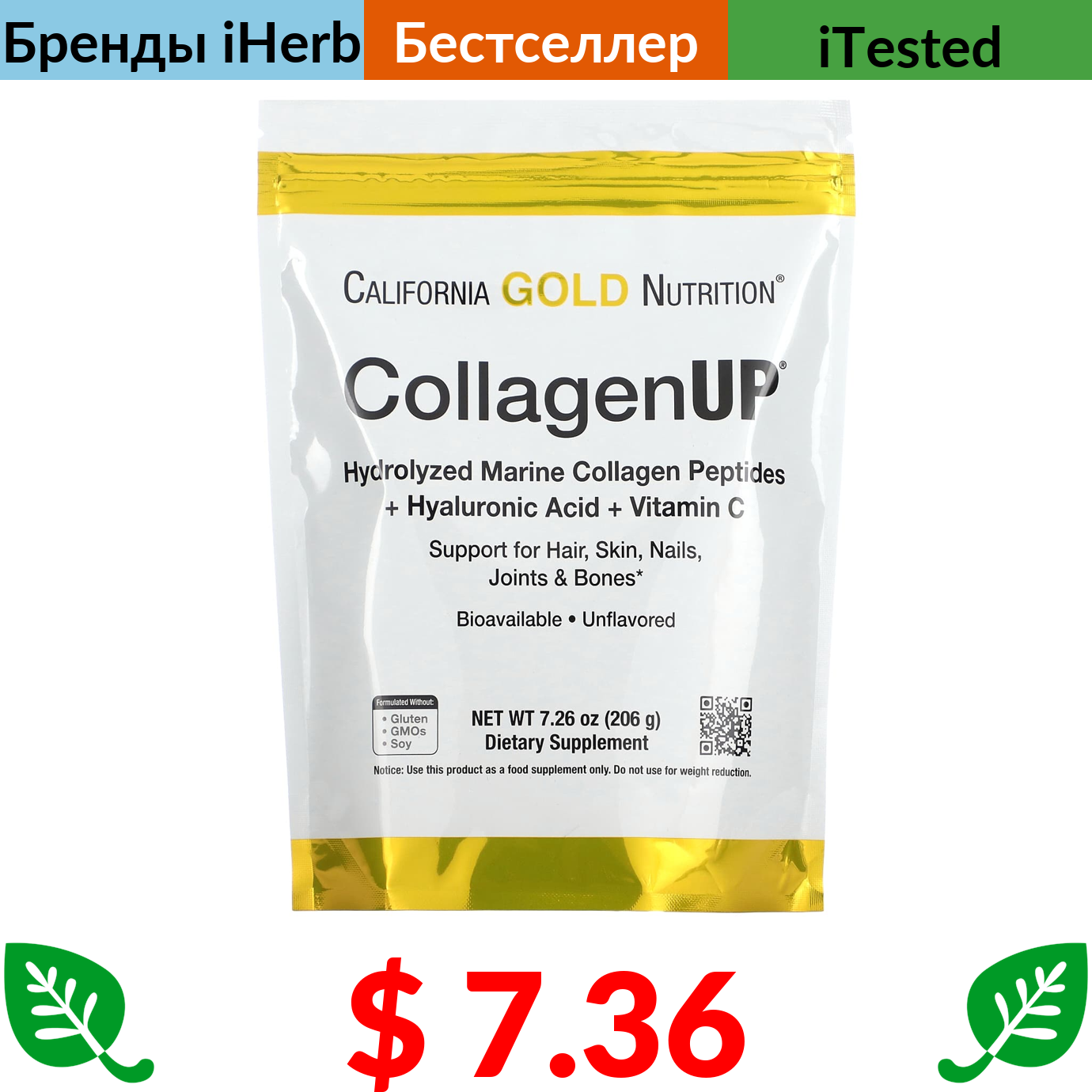$ 2.78 California Gold Nutrition, Gold C, витамин C класса USP, 1000 мг, 60 вегетарианских капсул