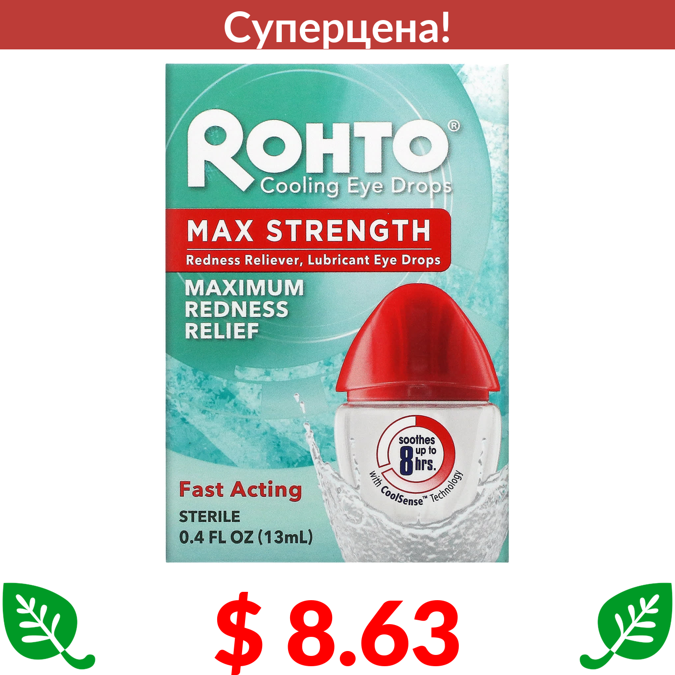 $ 8.63 Rohto, Охлаждающие глазные капли, Максимальная эффективность Уменьшение покраснения, 13 мл