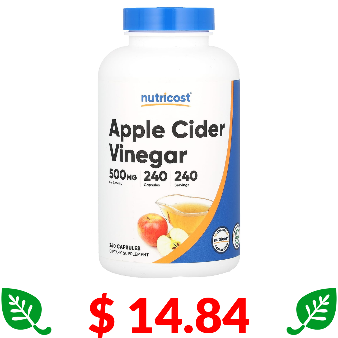 $ 14.84 Nutricost, Яблочный уксус, 500 мг, 240 капсул