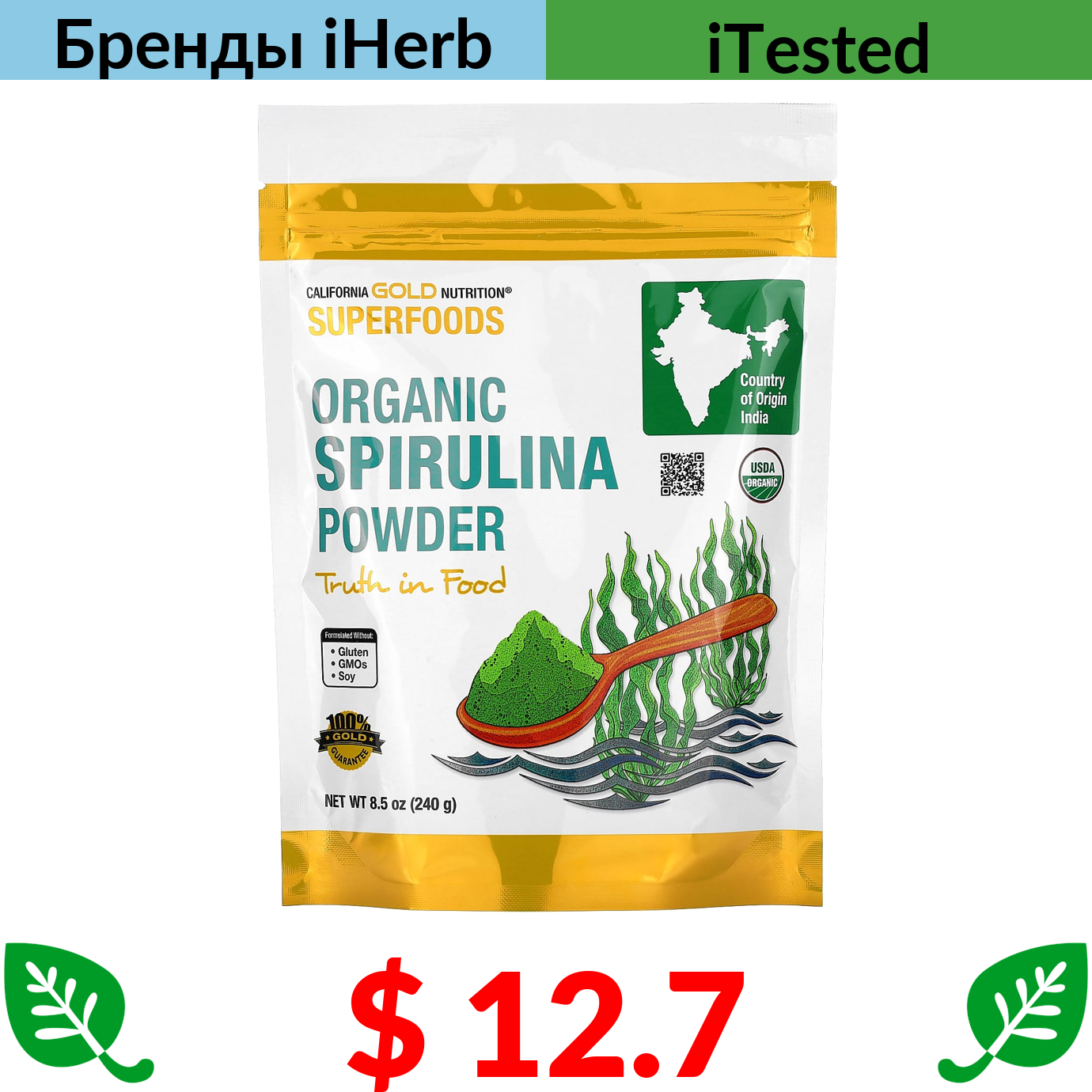 $ 12.7 California Gold Nutrition, Superfoods, органический порошок спирулины, 240 г (8,5 унции)