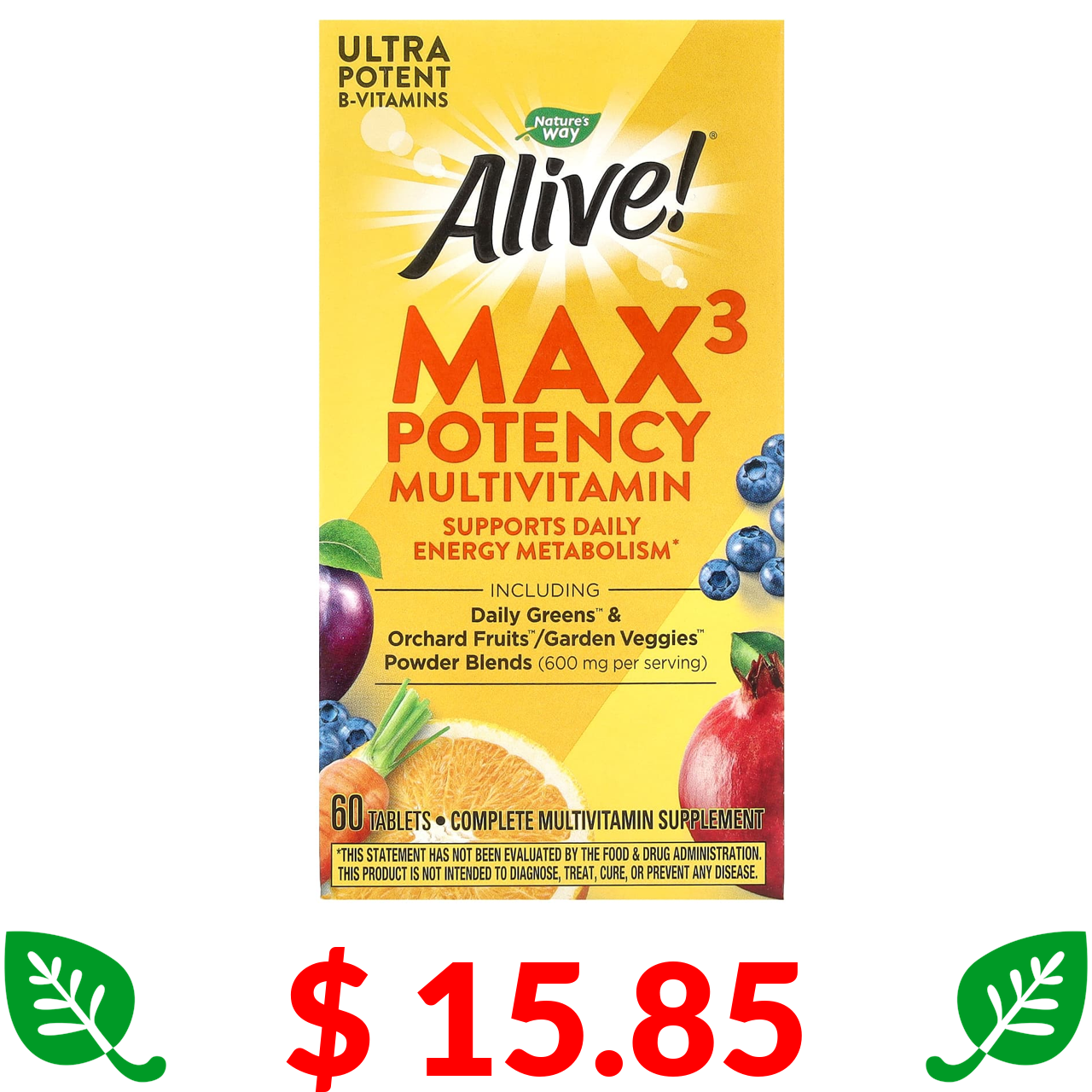 $ 15.85 Натурес Вэй, Alive! Max3 Daily, мультивитамины, 60 таблеток