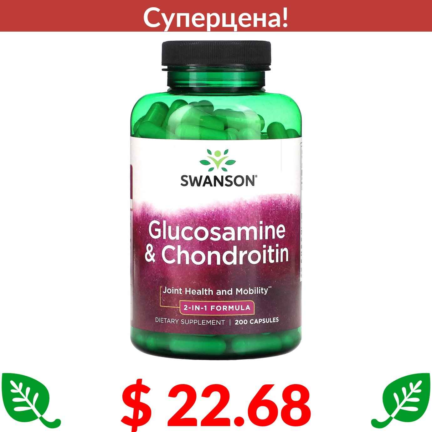 $ 22.68 Swanson, Глюкозамин и хондроитин, 200 капсул