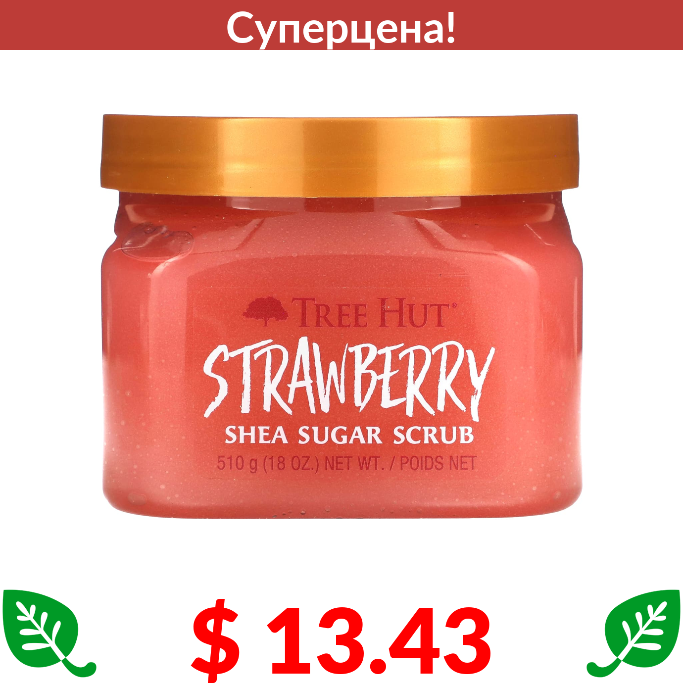 $ 13.43 Tree Hut, Сахарный скраб ши, клубника, 510 г (18 унций)