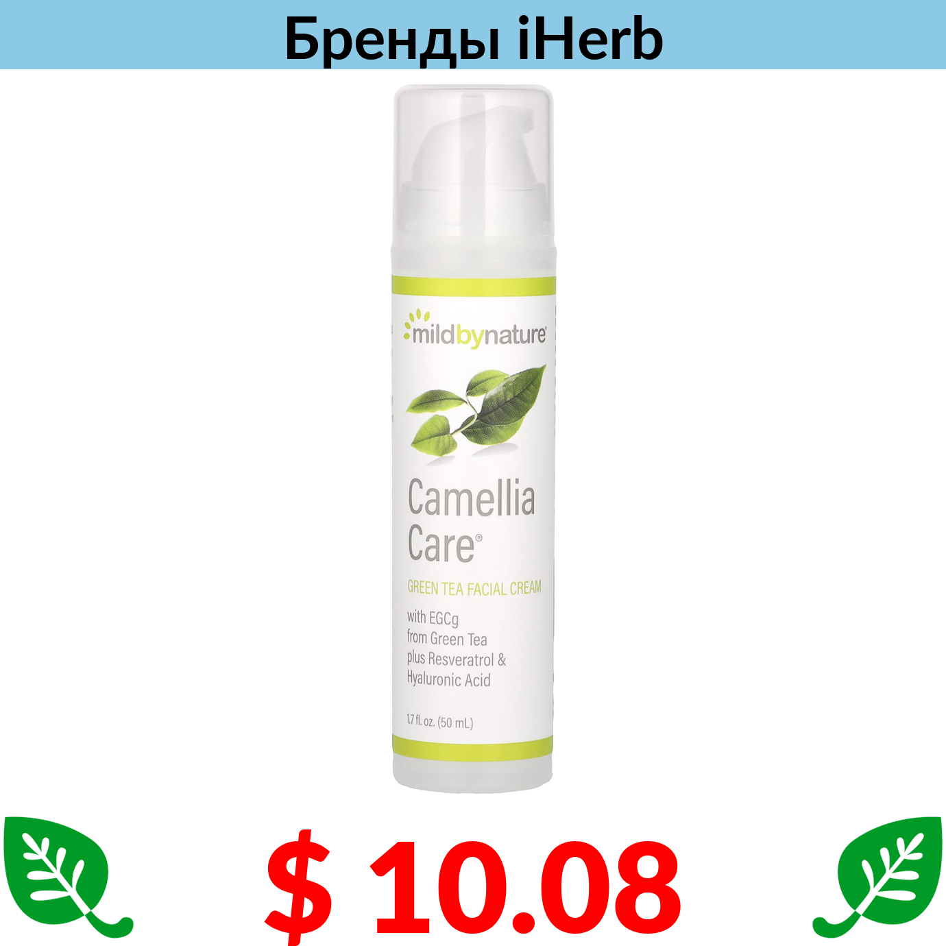 $ 10.08 Mild By Nature, Camellia Care, крем для кожи с ЭГКГ из зеленого чая, 50 мл (1,7 жидк. унции)