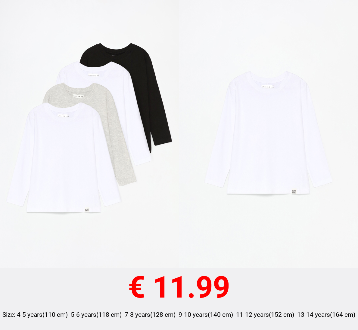 € 11.99 Pack of 4 plain long sleeve T-shirts.