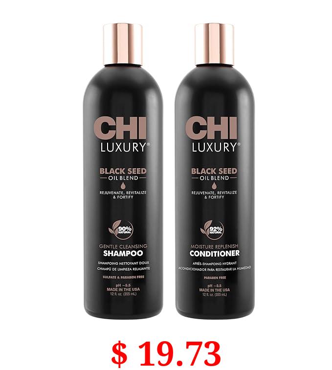 $ 19.73 CHI Luxury Black Seed Oil Blend Gentle Cleansing Shampoo 12 Fl Oz, CHI Luxury Black Seed Oil Blend Moisture Replenish Conditioner 12 Fl Oz (pack Of 2)