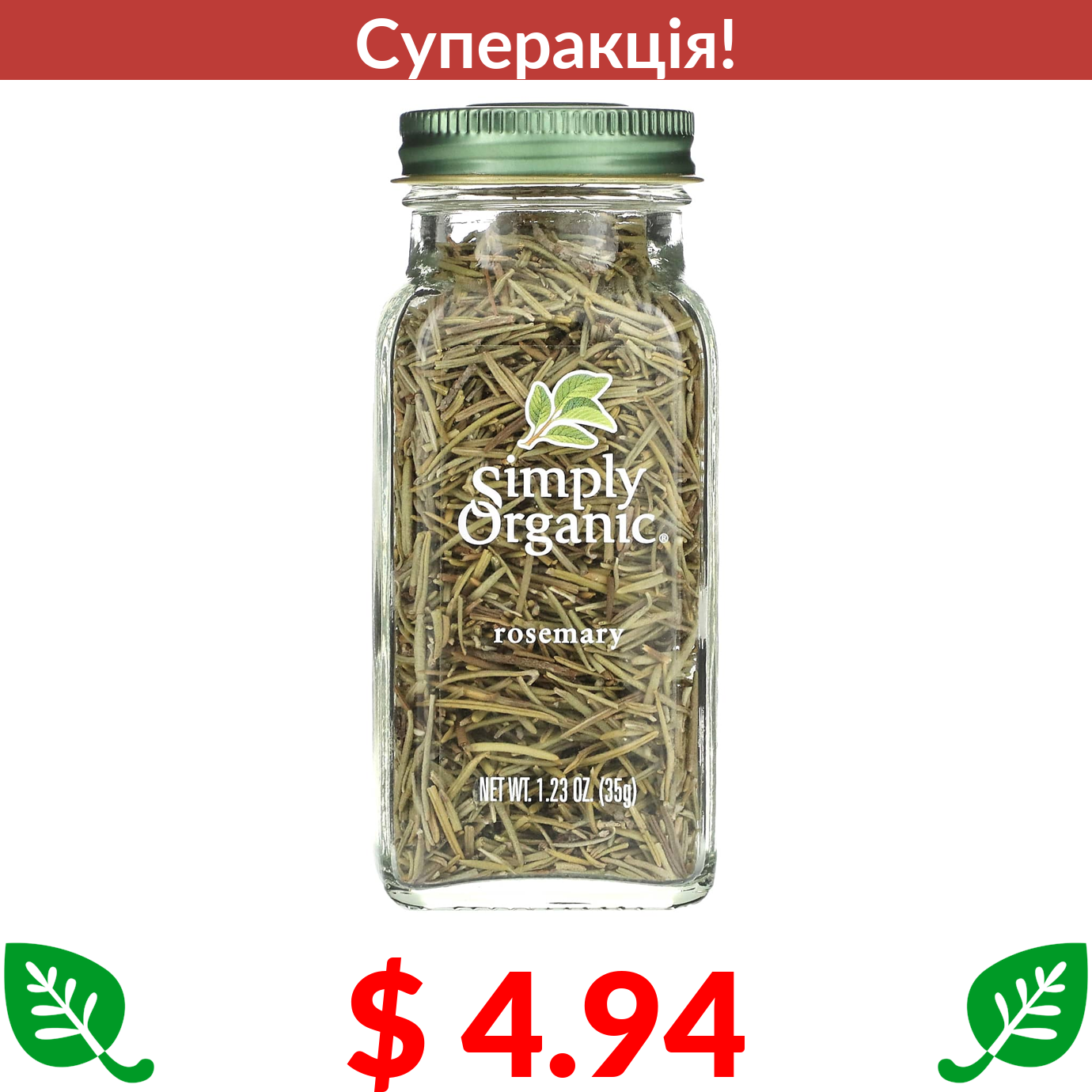 $ 4.94 Simply Organic, розмарин, 35 г (1,26 унції)