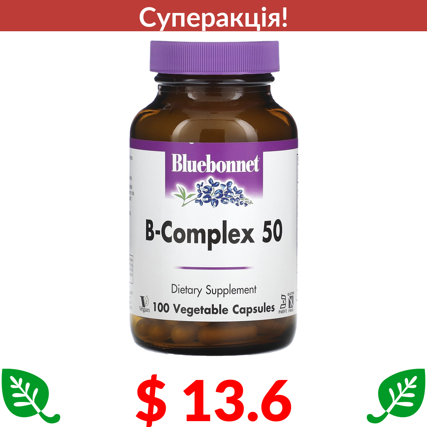 $ 13.6 Bluebonnet Nutrition, B-Complex 50, 100 рослинних капсул