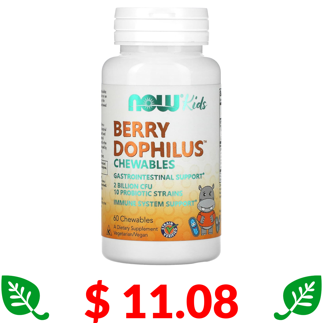 $ 11.08 Now Foods, Berry Dophilus, детский, 2 миллиарда, 60 жевательных таблеток
