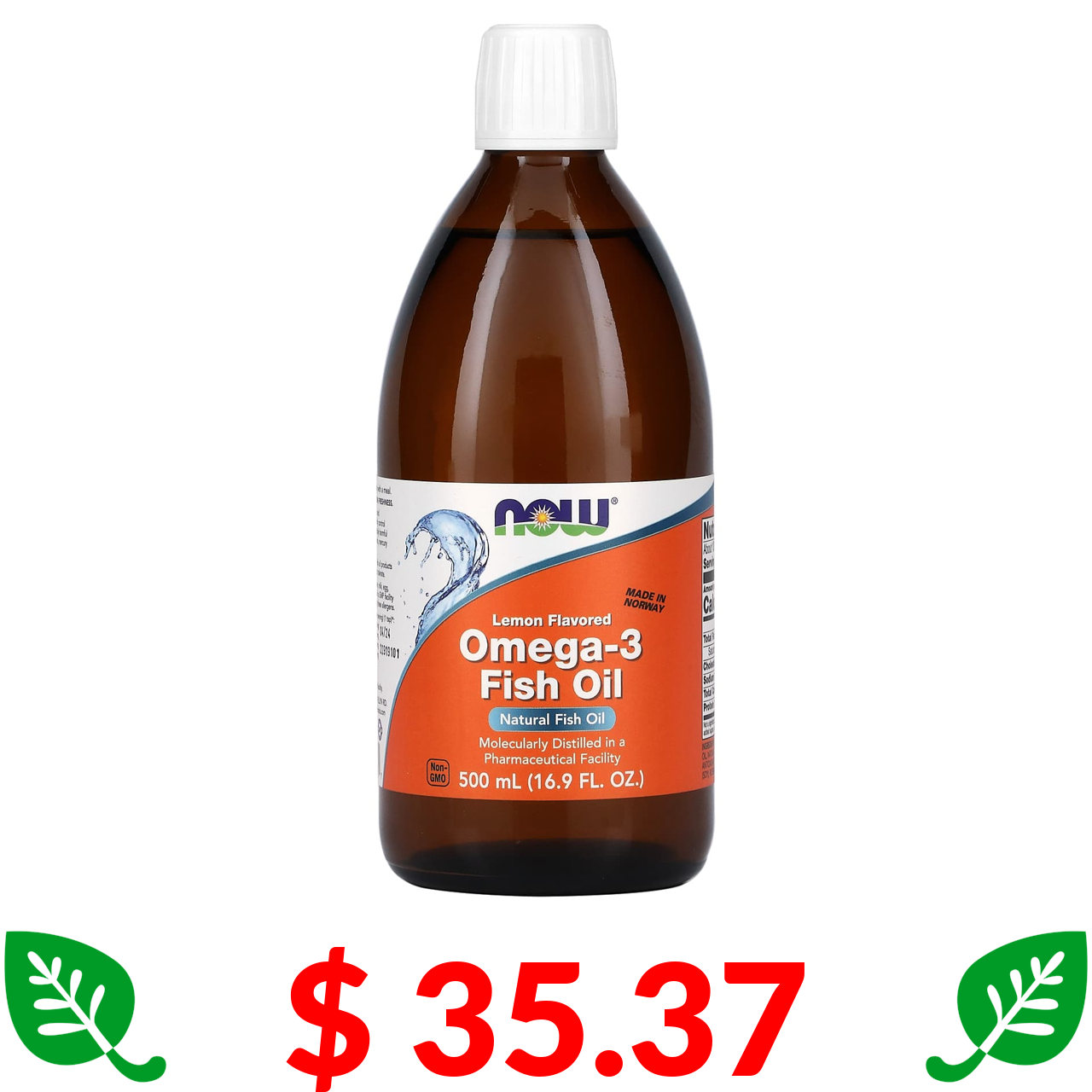 $ 35.37 Now Foods, рыбий жир с омега-3, лимонный вкус, 500 мл (16,9 жидк. унции)