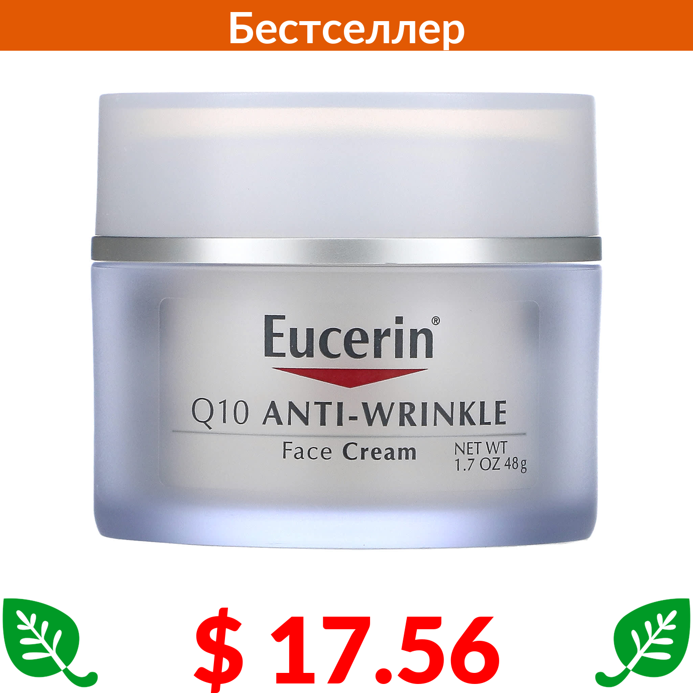 $ 17.56 Eucerin, крем для лица против морщин с коэнзимом Q10, 48 г (1,7 унции)